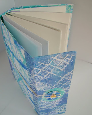 This is the first time I've made a book and bound it using a Coptic Stitch binding technique. It was so much fun but I must admit that I had to check out a book from the library and study it very closely before I could do the stitching . When the signatures are sewn in using this technique, the book will lay flat.
